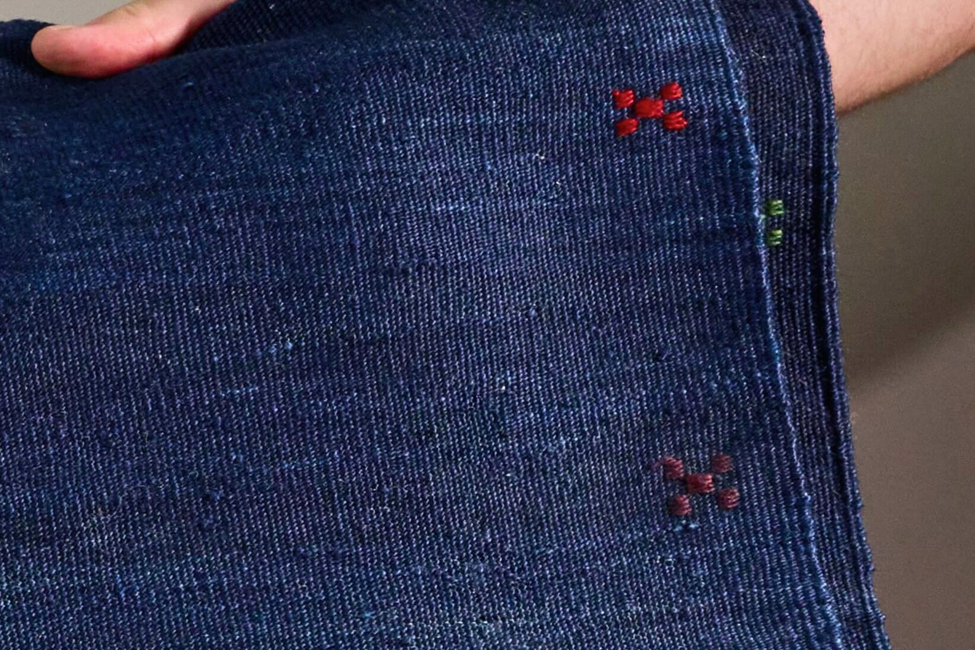 Small-batch handweaving, not mass production, minimizing energy use and waste.